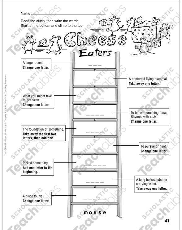Cheese Eaters Word Ladder Grades 4 6 Printable Skills Sheets Games And Puzzles